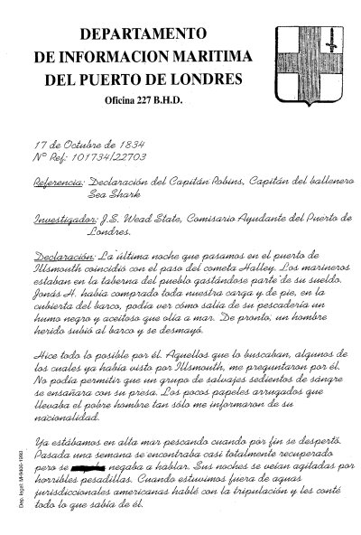 Carta 1: Declaración del capitán Robins.